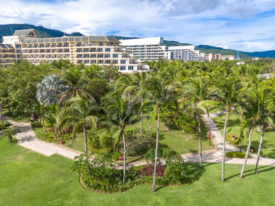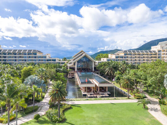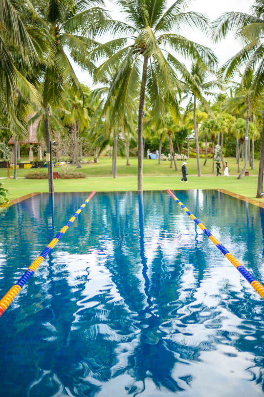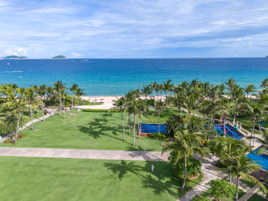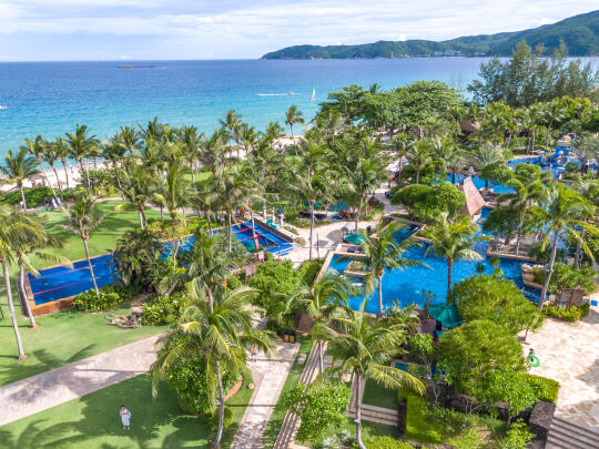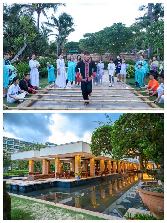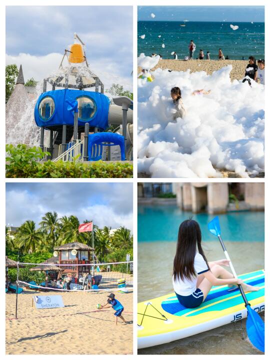 我特别喜欢亚龙湾的海水,湛蓝色的,所以此次三亚之行安排了两晚住在亚龙湾喜来登酒店。 喜来登是万豪酒店集团旗下的高级品牌,这家酒店的园林设计出自Bill Bensley之手,一步一景东南亚度假氛围感十足,举办过3届世界小姐的比赛。酒店内的热带花园很漂亮,从房间步行三分钟就可以到亚龙湾沙滩。这次入住的是海景套房,一卧一厅,住得很舒服。118㎡的奢华空间里,每扇窗都框进了果冻海的渐变色~ 户外活动有在椰林中的清晨颂钵冥想、八段锦,可以跟着专业老师学习。环礁湖泳池的SUP浆板体验、还有沙滩排球和泡泡派对。户外泳池最受欢迎,住店客人里亲子家庭的最多,还有专属儿童的户外水寨和泳池孩子们在这里玩得都特别高兴。 当晚霞染红天空和海平面,属于夜晚的魔法开始,晚上在大草坪有本地竹竿舞,可以和工作人员一起跳。大家手拉手围着篝火,一起舞动。带小朋友可以参加酒店的观星活动,专业的天文设备,邂逅南中国海的星空私语。