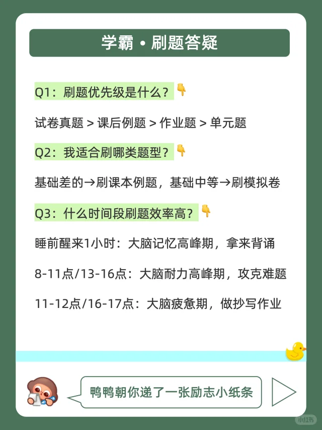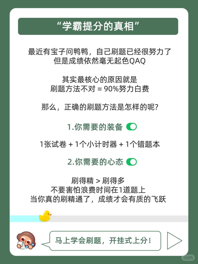 [赞R]低效刷题不用怕,鸭鸭带你狂提速❗️ · [哇R]拿下这篇刷题秘籍,暑假嘎嘎起飞就在于此!🚀 . 🐣我是鸭鸭,持续分享更多学霸秘籍,陪宝子们学习开窍,考试开挂!💯