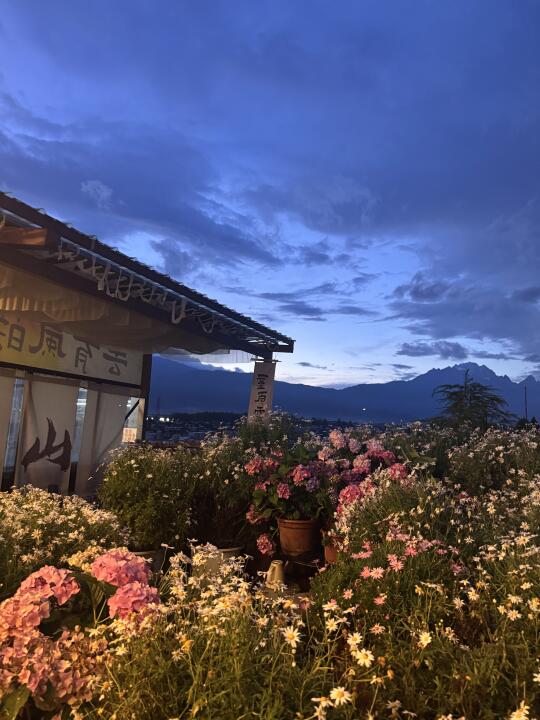 小花园[樱花R]好多花花 去的时候有点晚了~白天下雨 错过了白天的美景 就想去看看晚上是什么样子的 不过晚上人挺少的 可能没有白天那么美 白天可以看到雪山🏔️不过晚上有种蓝调时刻 而且下过雨很凉快 就在店里和店长聊天 一聊就聊了一个多小时[大笑R]很热情~ 还有摄影师帮忙拍照📷可以拍好多个机位 简直是太棒了🥹 对了!店里还有好多衣服可以换来拍照 很多美美裙👗可惜来得太晚了 留点遗憾 下次再来!