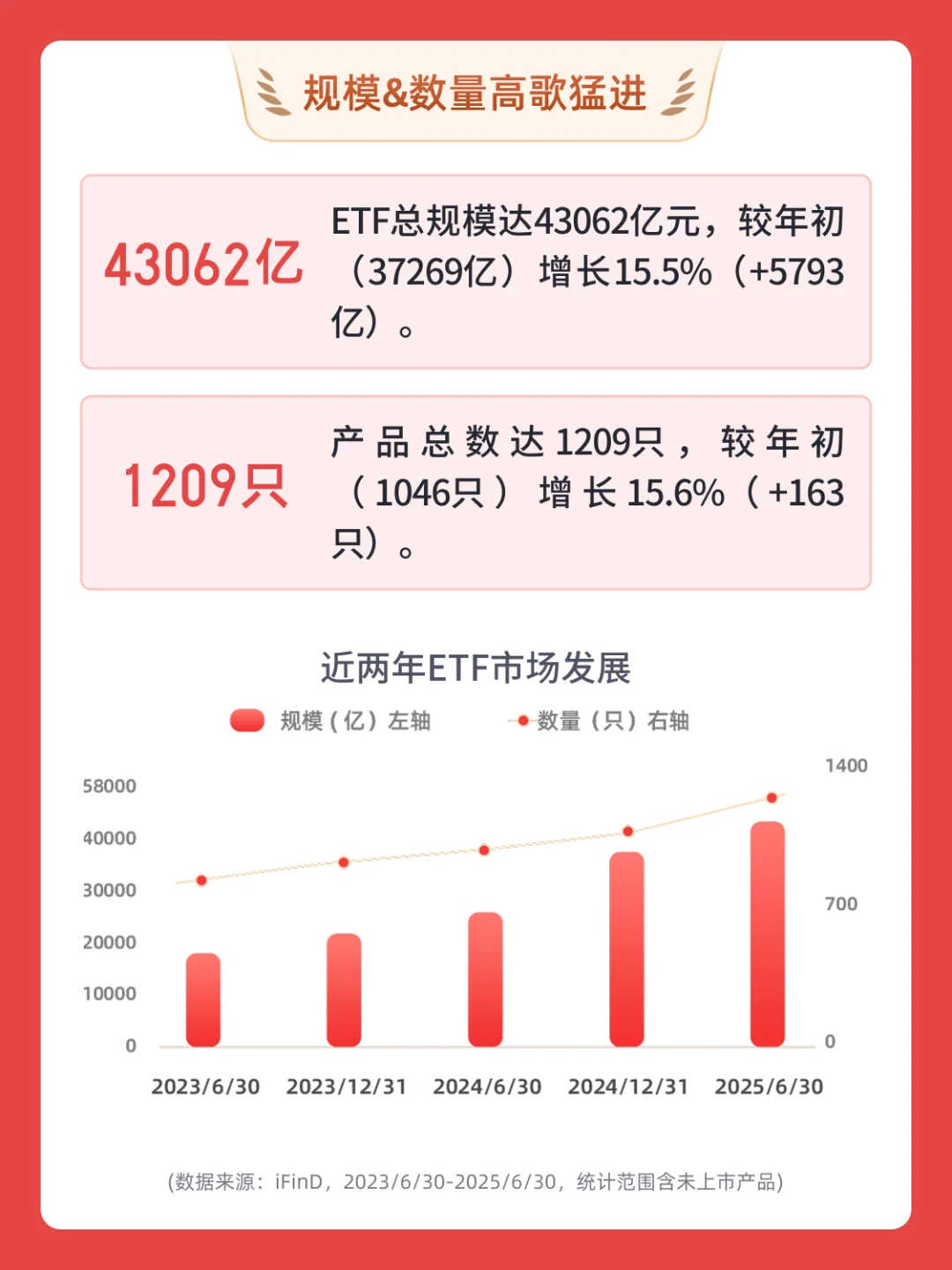 [向右R]ETF总规模达43062亿元,较年初(37269亿)增长15.5%(+5793亿)。