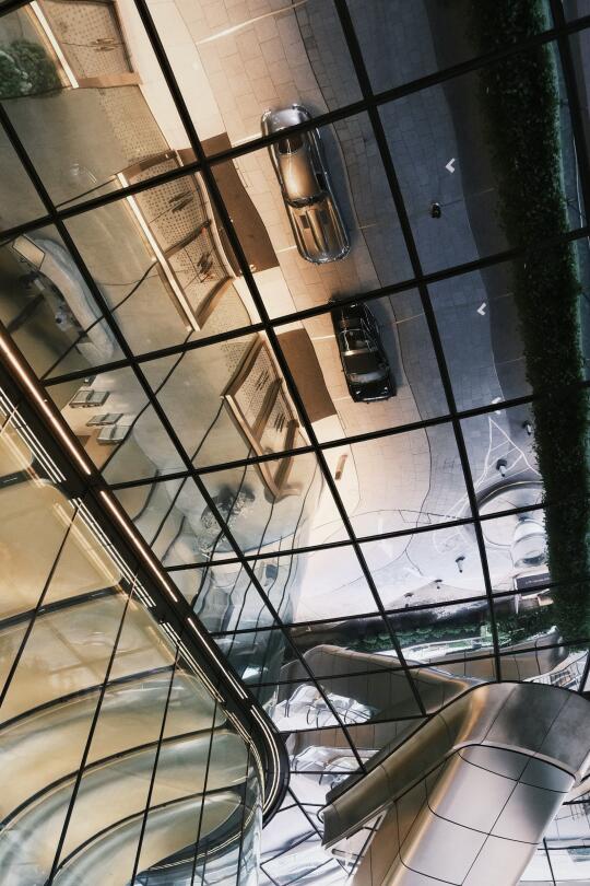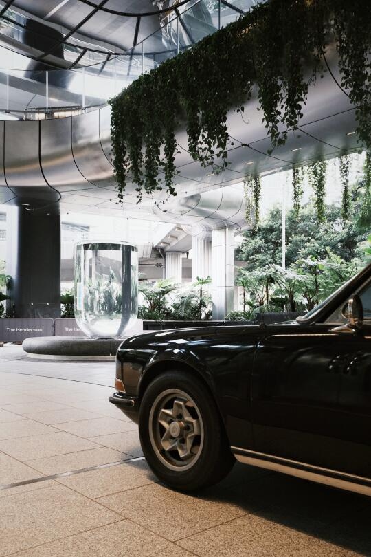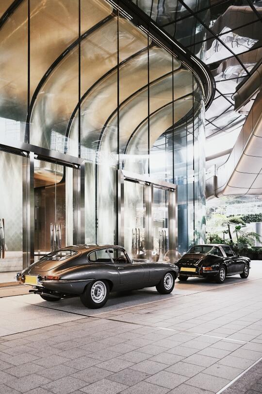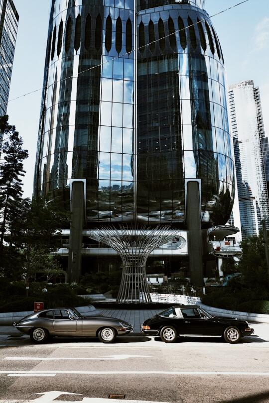 将经典老爷车停靠在这座前瞻性建筑旁竟毫不违和——尽管相隔六十余载,二者流畅的曲线却在时空中交相辉映。