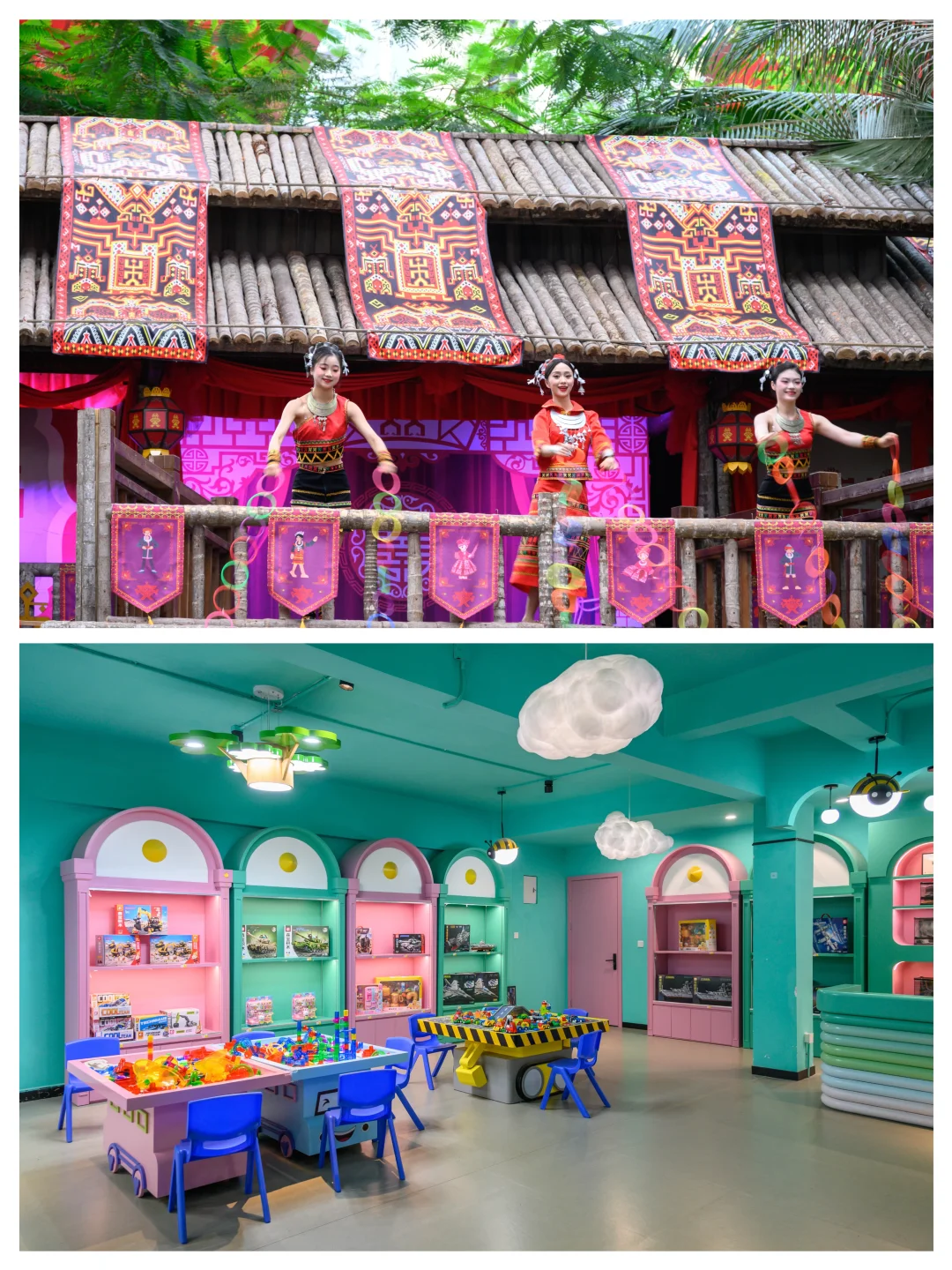 天呐,这个景区居然不热的,还有空调,原来有顶棚。一进来就看到黎寨招亲,一位“新郎”上去被换了衣服还学跳舞,把大家都逗乐了。