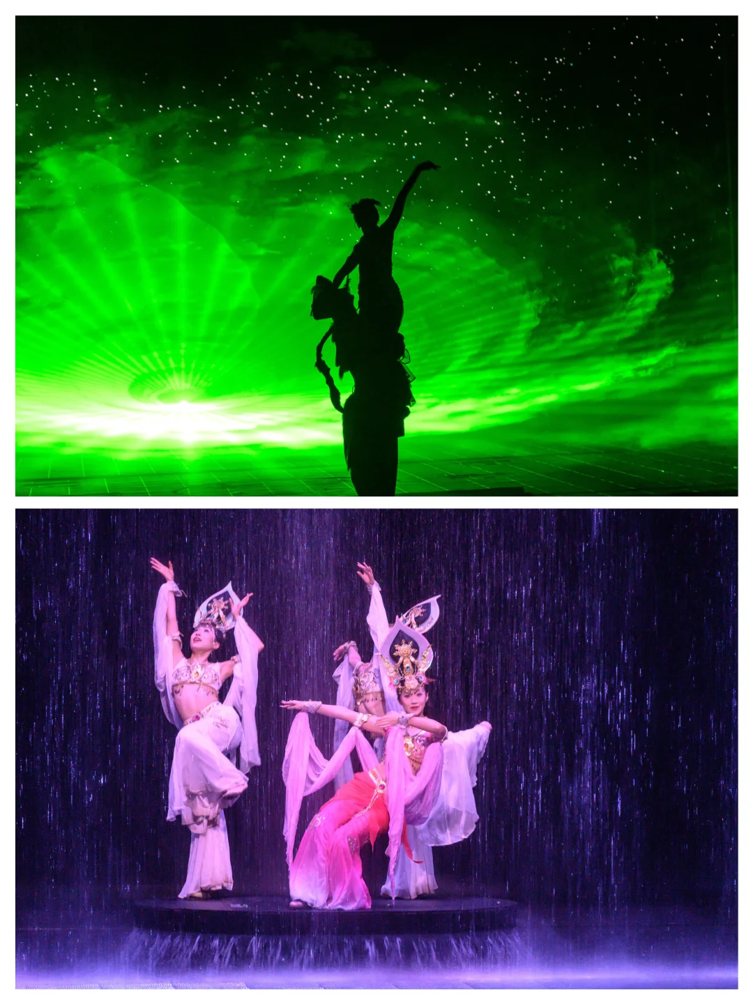 鉴真和尚历经万难,漂流到三亚东渡扶桑的故事。舞台上真水的涌出更增加了舞台效果。