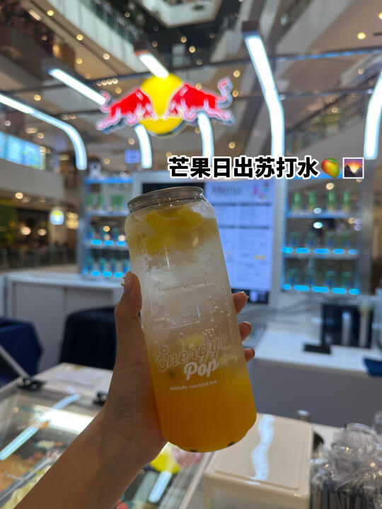 Mango Sunrise Mocktail Soda ——百香果混搭芒果,还有芒果果肉哦 酸甜清爽 绝对是正宗泰式风味 🥭 👅
