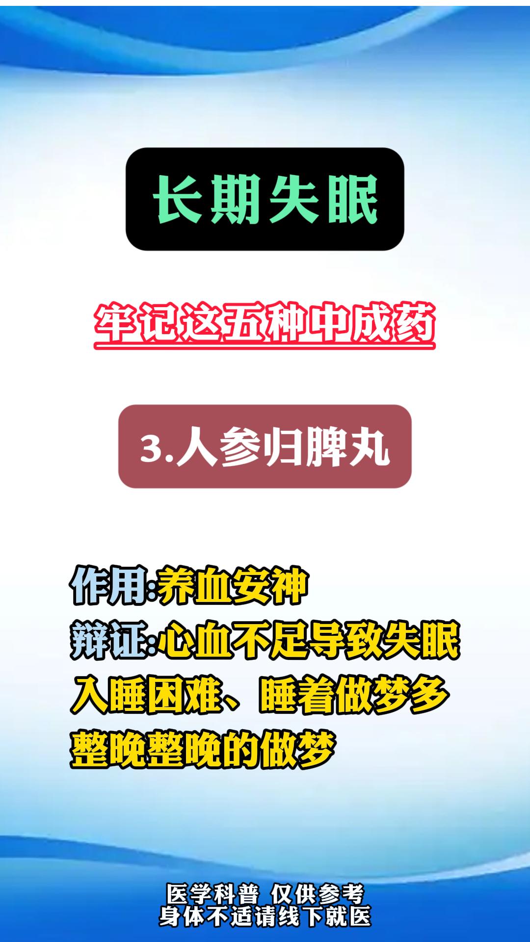 长期失眠,要知道的五种中成药,缓解失眠。