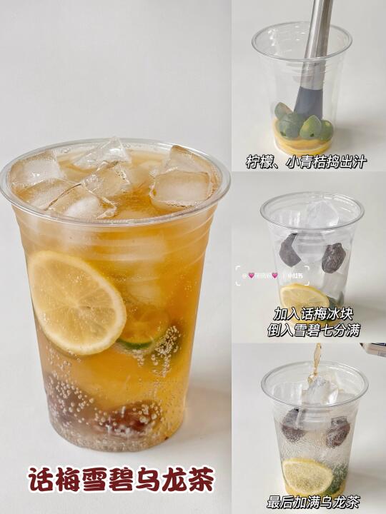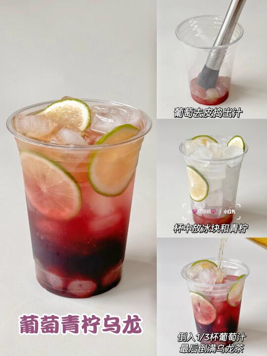 这个高温天,太需要冰凉解暑的饮品了💦 今天分享几款清爽又好喝的饮品🥰 自制超简单,5分钟就能搞定!学会了再也不用去奶茶店啦~ 巨清爽解腻,亲测每款都好喝! - ✅葡萄青柠乌龙 ✅抹茶冰乌龙 ✅乌龙冰茶拿铁 ✅桂花生椰乌龙 ✅冻柠乌龙茶 ✅莓莓桃桃乌龙茶 ✅百香果柠檬茶 ✅乌龙茶冻撞奶 ✅话梅雪碧乌龙茶 ✅西瓜冰柠茶 ✅青提柠檬茶 ✅菠萝椰子冰 🌈具体做法参考图片噢~ 茶底可以换自己喜欢的,乌龙茶/茉莉花茶/绿茶/白茶等等都可以~期待你们交作业😘 有疑问欢迎评论区🙋♀️举手提问