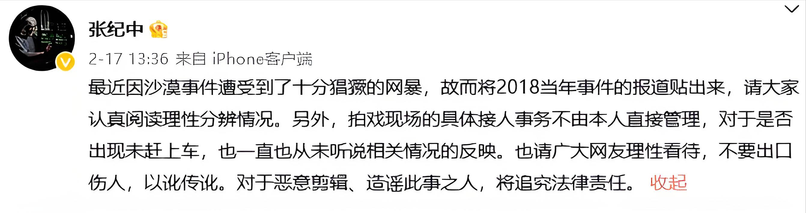 实际情况是张颂文确实在沙漠遇到过麻烦,但那是租车司机的锅,跟张纪中没关系,张纪中当时都不在剧组,两个人都得出来澄清,还得说要用法律手段维权