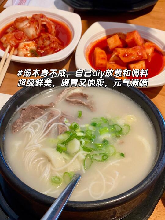 起得比较晚直接来吃brunch,重点是来喝汤哒!这个网红韩式牛肉汤超级鲜美好喝🥘本身不咸需要自己加调料或调辣度,暖胃又饱腹,超级喜欢❤️