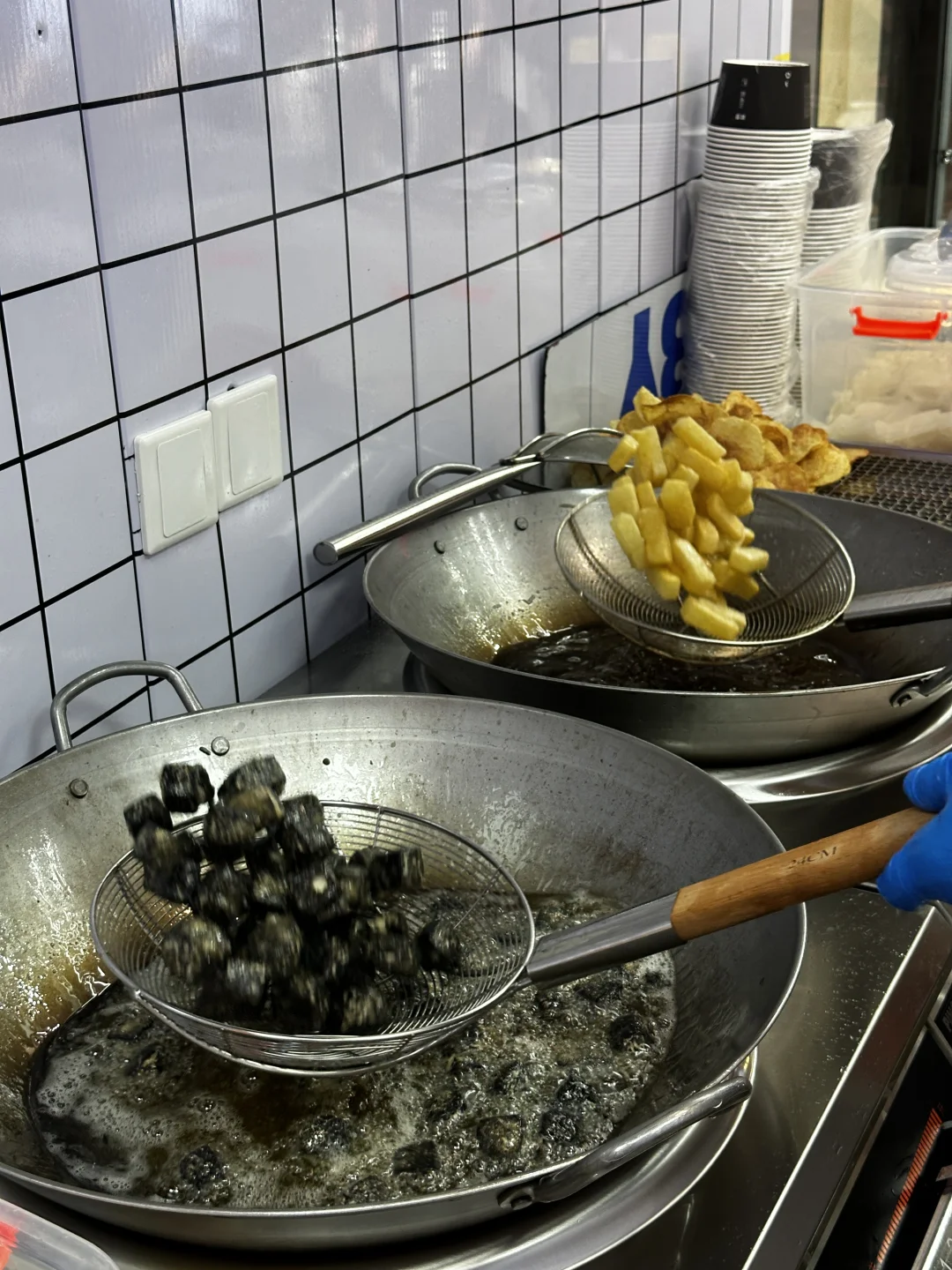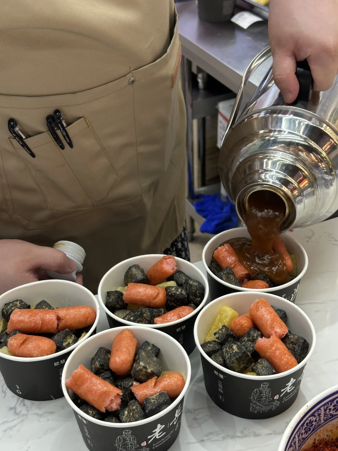 没想到在太原吃上了嘎嘎好吃的臭豆腐‼️路过看到排队就知道对了👅 就这种人贼多的摊子绝对没问题🧆全家福搞一个!边逛边吃那才叫韵味😋 - 现炸现卖♨️焦香酥脆✨内里很软嫩!豆香味浓郁!重点是那个卤子,装在暖壶里的!制作过程还怪有仪式感的! - 分大小份!刚出锅的热乎乎的最好吃!爱吃辣的可以要老板多放点辣椒!🧄配料也非常多!全家福还有炸宽粉和炸恶,还有炸土豆🥔一份给我吃饱了!!