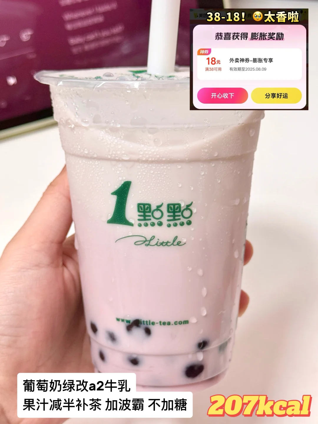 🍇葡萄奶绿 改A2牛乳 果汁减半补茶加波霸 不加糖