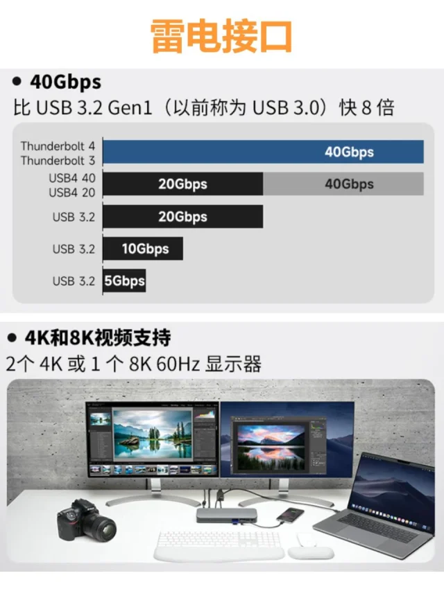 ✅雷电4接口是由英特尔和苹果公司联合开发的,它的传输速度比起之前的雷电3接口提升了整整两倍,达到了40Gbps!这意味着你可以在几秒钟内传输大量的数据,比如说几个G的电影文件,简直是太方便了!
