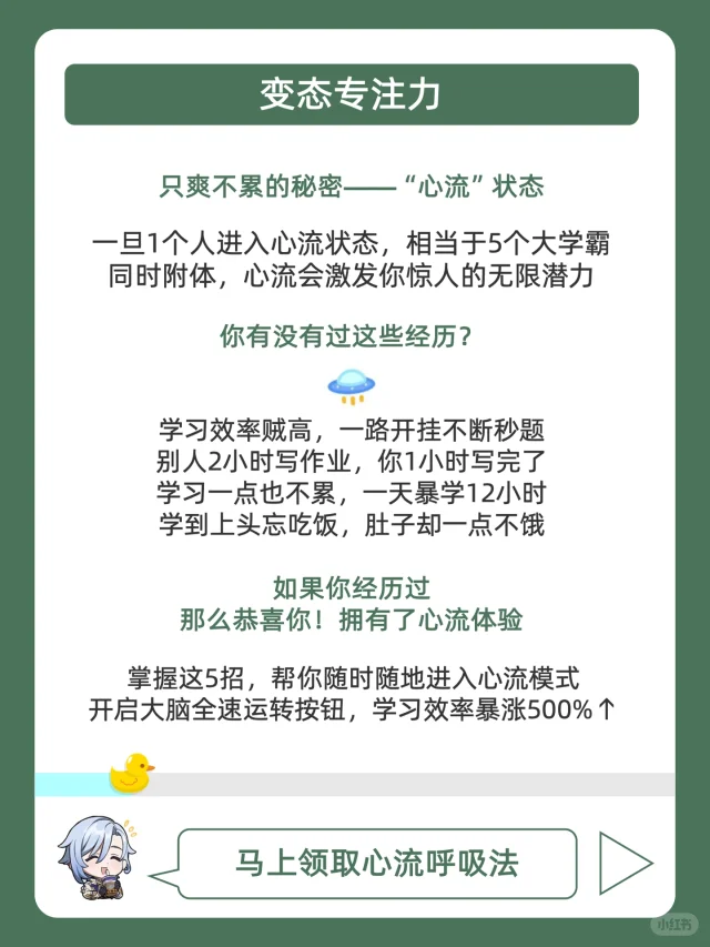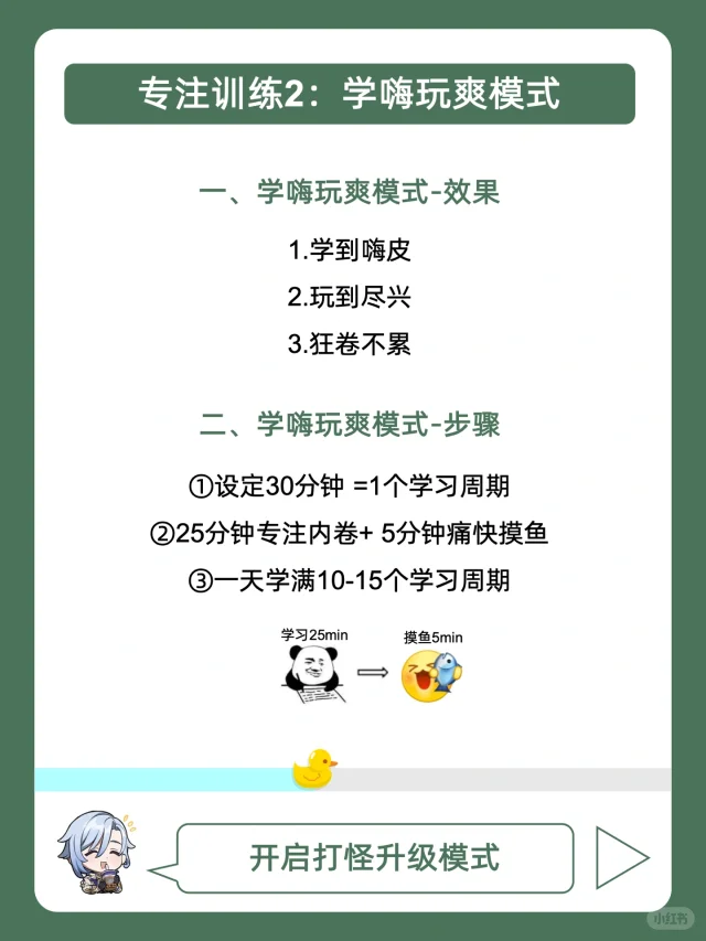 · [赞R]学习摆烂不用怕,鸭鸭带你做学霸❗️ · [哇R]拿下这5个神级专注方法,效率暴涨就在于此!🚀 · 🔥赶紧学起来,这可是卷王间不轻易透露的秘密❗ · ️🐣我是鸭鸭,持续分享更多优质学习方法,陪宝子们快乐学习,驰骋学海!🌊