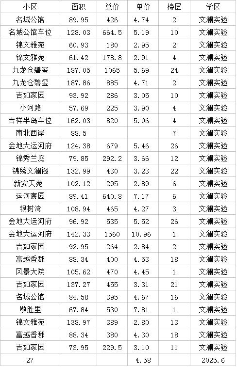 单价2.9总价180落户文澜实验,6月拱墅成交