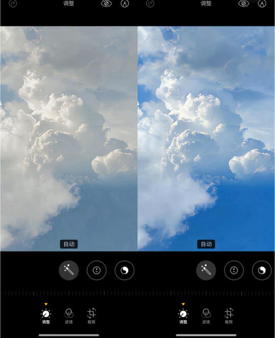 拍的蓝天不蓝、白云不白?来试试这个蓝天白云调色吧!真的很简单,教程安排上~ 醒图教程 打开智能优化 对比度+15 饱和度一10 自然饱和度+20 高光+20 锐化十15 色温一20 *具体数值根据照片明暗关系调整