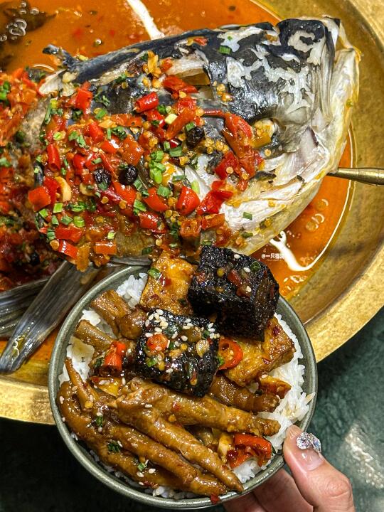 老坛剁椒鱼头王🐟,肥美鲜嫩,汤汁拌饭吃晕碳了。
