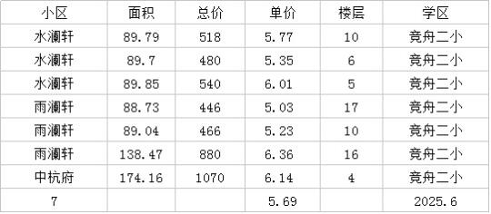 蒋村行知二竞舟二6月成交数据
