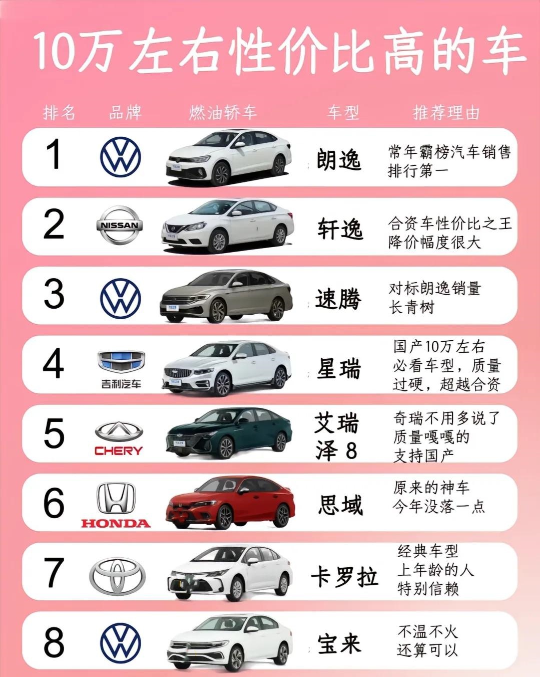 闭眼入👀10万左右性价比高的轿车合理