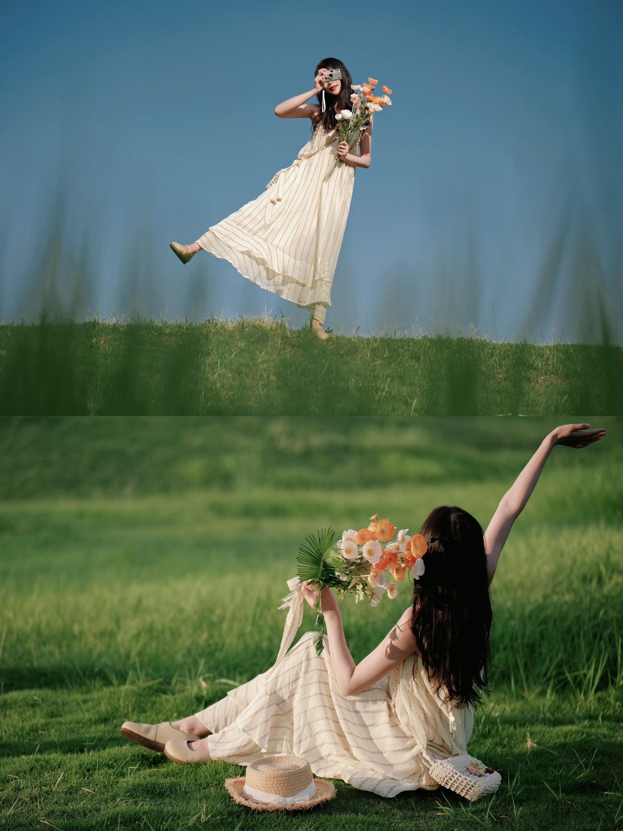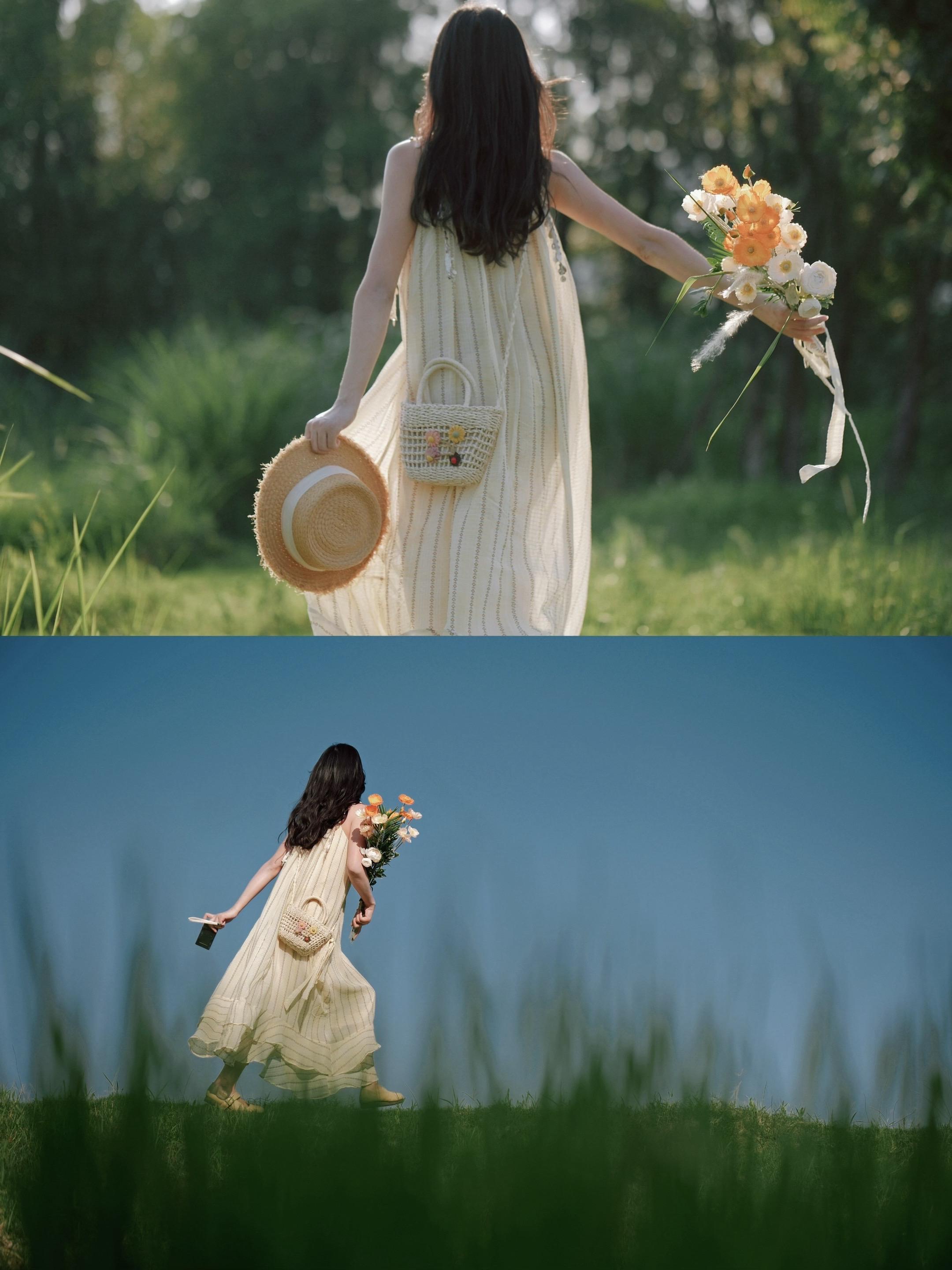 储存夏天的记忆~文艺电影感拍照。虽然天气有点热 但遇到好看的光线依然热爱拍照! 傍晚时分发光的发丝和裙摆也太有氛围啦! 捕捉在草地上奔跑的背影 拿着花束蓝天下转个圈圈~ 树林里拍张慢快门 夏日出游氛围感十足 用绿调来记录夏天的美好吧!