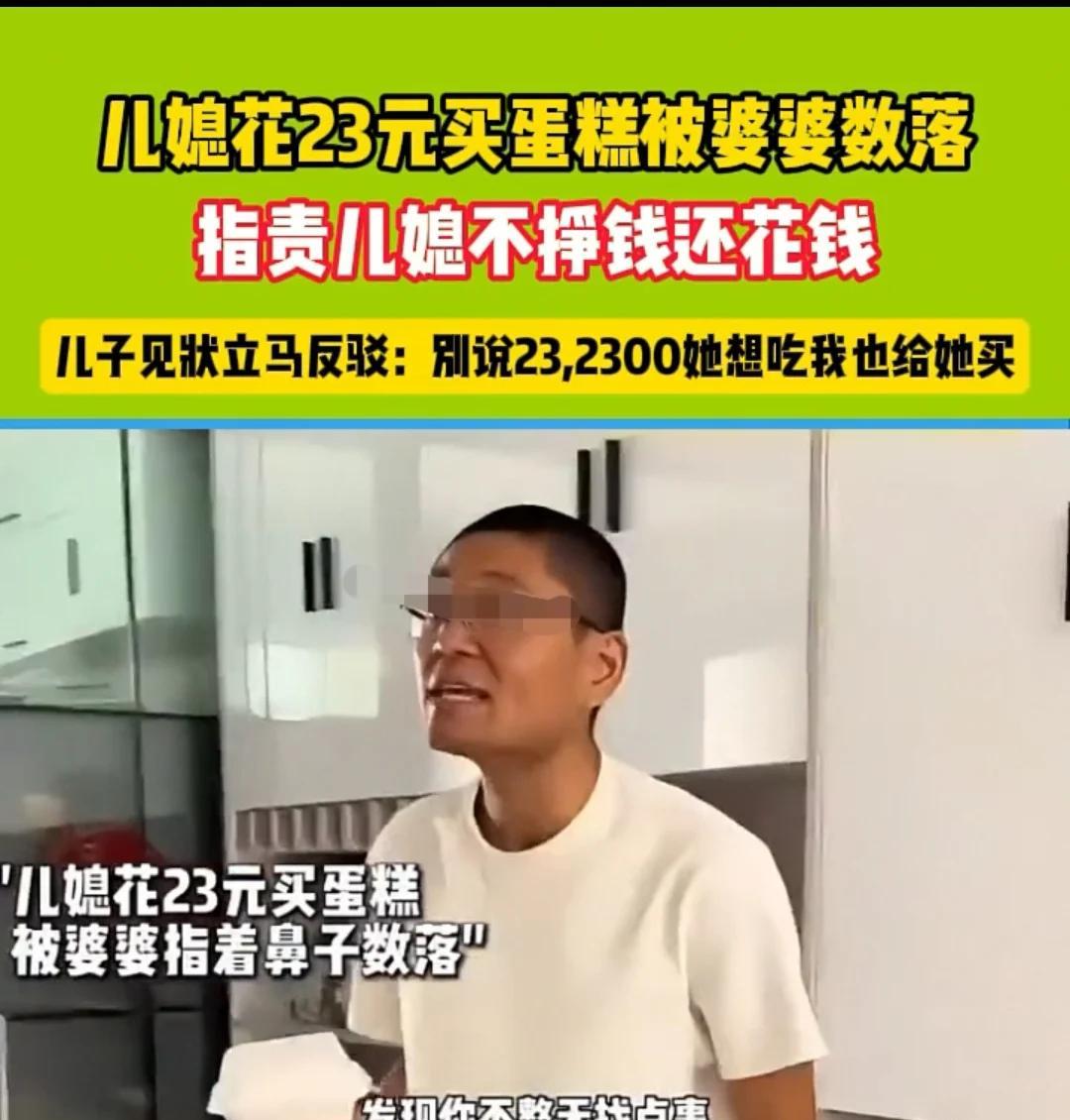 河南,女子买了23元的蛋糕,被婆婆指责不挣钱、只花钱,儿子却反驳道:“别说23元,就是2300元我也给她买。”随后拉着女子到卧室去享用蛋糕了。 据乡村观察7月16日报道,女子平时比较喜欢吃零食,最喜欢的还是甜点,于是她就买了一块23元的小蛋糕,回到家中,本想和大家一起享用。 结果婆婆看到后就不高兴了,脸色阴沉下来,不但不吃蛋糕,反而指责女子,说她只花钱,不知道挣钱。 女子本想和大家一起享用,哪怕是小蛋糕,每人尝两口也能感受到甜甜的心意,谁知道婆婆偏要破坏气氛,不但不吃,还在那里唠叨。 男子看到后有点不高兴了,自己老婆买蛋糕回来犒劳大家,虽然钱不是她挣的,但她把钱花在了大家身上,这有什么问题呢?妈妈应该高兴才是,却在这种时候扫了兴,他实在有点忍受不了。 于是男子直接指责妈妈:“你不吃就算了,干嘛那么多事呢?整天不找点事情出来,你是难受吗?” 妈妈被儿子这么一说,更加不高兴了,她委屈巴巴地说:“我是替你教育她呀,你天天挣钱那么辛苦,她不但不挣钱,还花你的钱,你怎么反倒说我了?” 儿子在妈妈的管教下,从小就过得非常节俭,想吃点什么、喝点什么,妈妈都不给买。所以他下定决心,等自己挣钱了,一定要让自己的孩子、自己的老婆多多享受生活,想吃什么、想喝什么就买。 可是妈妈的思维却没有变,觉得挣了钱就该存起来,不应该浪费,更不应该一天到晚只知道吃喝玩乐,所以才会责怪儿媳妇。 但儿子的想法早已和妈妈不一样了,他想的是,努力工作就是为了让家人过得更好,想吃什么就买什么,没有必要那么节约。挣钱不就是为了享受生活吗?挣钱不就是为了能够快乐吗? 妈妈可不答应,觉得儿子挣的钱就是他们家的,和儿媳妇没有关系,于是说道:“她凭什么用你的钱呀?她凭什么只花不挣呀?我替你教育她,你还不满意了?我就看你天天这样宠着她,到时候把你的老底都用光了!” 男子实在不想听妈妈唠叨了,他从小长到大就一直听着这些话,所以不想委屈自己的儿媳妇。他直接拉着女子到卧室去享用蛋糕,并且告诉妈妈:“不要多事儿,媳妇娶来不是打工的,也不是卖命的,是来好好享受生活的。我们的生活我们自己知道,你不要掺和。” 最后,妈妈还想继续唠叨,可卧室门已经关上了。儿媳妇本想买回来让她也尝两口,结果她没吃成,还扰得大家不开心。 人家夫妇进去甜甜美美吃蛋糕了,她只能在后面张牙舞爪地继续唠叨,不过谁也听不到了——儿子儿媳已经将她“屏蔽”在外。既然她不懂生活,那人家也不愿意和她掺和,各自安好、各自享受生活就好。 网友们看到后,觉得非常解气,纷纷表示“如果自己老公能这样霸气回怼就太好了”。 而男子也说:“别说23元的蛋糕了,就是2300元,我也会给我媳妇买。她是谁呀?她是我最亲近的人,是会陪我到老的人,我就惯着她,我就宠着她。” 一、婆婆指责儿媳“不挣钱、只花钱”,从法律上看是否合法? 《民法典》第一千零六十二条规定,夫妻在婚姻关系存续期间所得财产(如工资、奖金等)属于夫妻共同财产,夫妻对共同财产有平等处理权。 儿媳使用夫妻共同财产购买蛋糕,是合法行使财产处分权。婆婆的指责本身不直接违法,但无权否定儿媳对共同财产的合理使用。家庭中应通过理性沟通处理分歧,而非单方面指责。 二、男子给妻子买蛋糕,法律上有何规定? 《民法典》第一千零六十二条(夫妻共同财产平等处理权)、第一千零六十三条(个人财产范围)。 若用夫妻共同财产购买,属于正常家庭消费,合法合理;若用男子个人财产(如婚前财产)购买,更是其个人财产处置自由,他人无权干涉。丈夫为妻子消费是对家庭财产的正当使用,符合法律规定。 三、若婆婆持续干涉儿子儿媳生活,法律上有什么解决办法? 依据《民法典》关于人格权的相关规定,要求婆婆停止侵害、赔礼道歉等。若情节严重,还可报警处理。 受害者可要求其停止侵害、赔礼道歉;情节严重的,可报警由公安机关依法处罚;若造成精神损害,还可起诉要求赔偿。 对于这件事,大家又是如何看待的呢?#分享城市新鲜事#