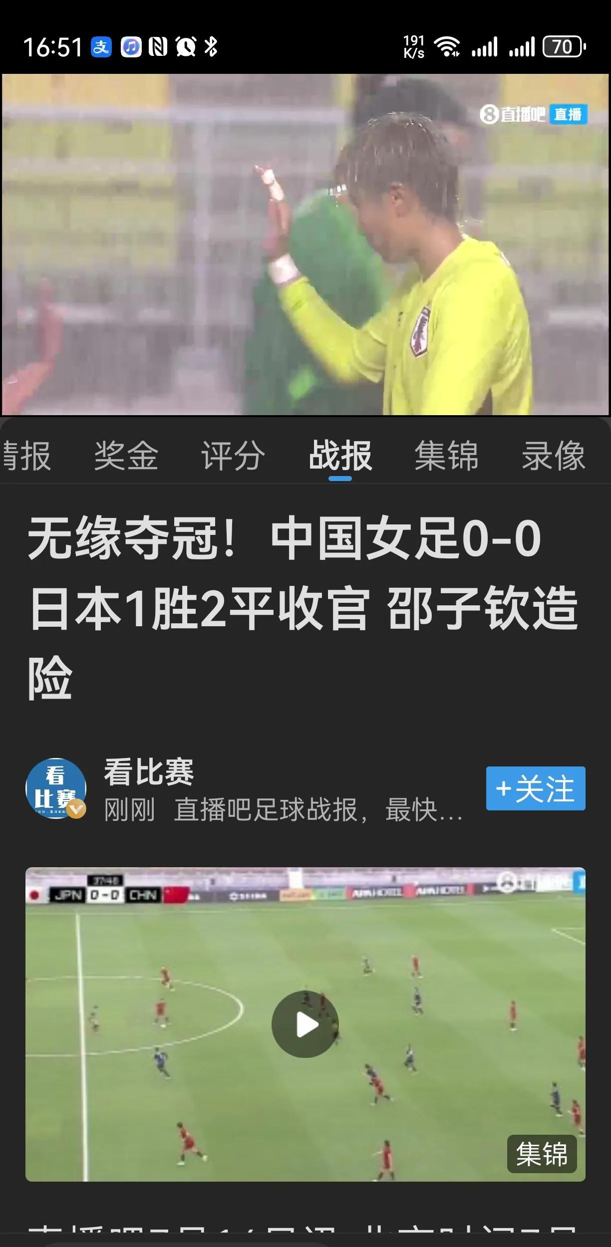 最终,双方0:0战平! 整场看下来,日本女足还是比我们强。 但中国女足,也有机会