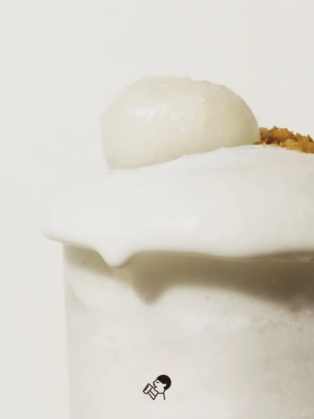 180天树上熟龙眼手剥去壳,再与真牛乳打成冰沙,手工现打椰椰浮沫堆成小座雪山,口感更轻盈天然。