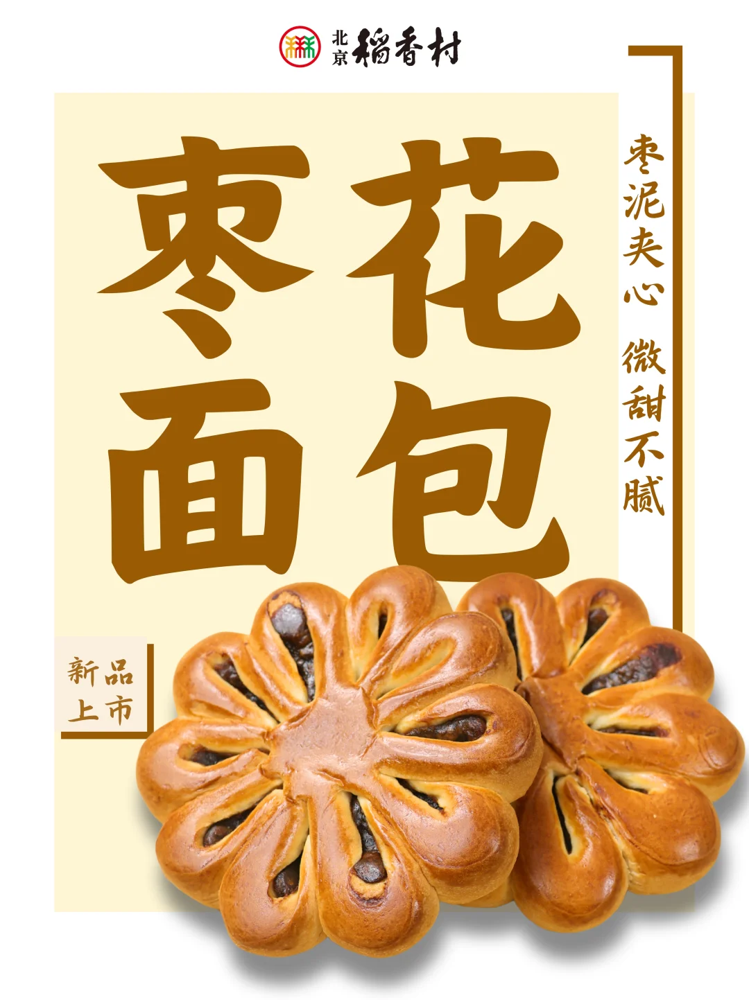 外观复刻枣花酥经典造型,松软面包胚如云朵般轻盈, 绵密的枣泥夹心,微甜不腻,每一口都是真材实料的枣香,满是老北京儿时的味道。