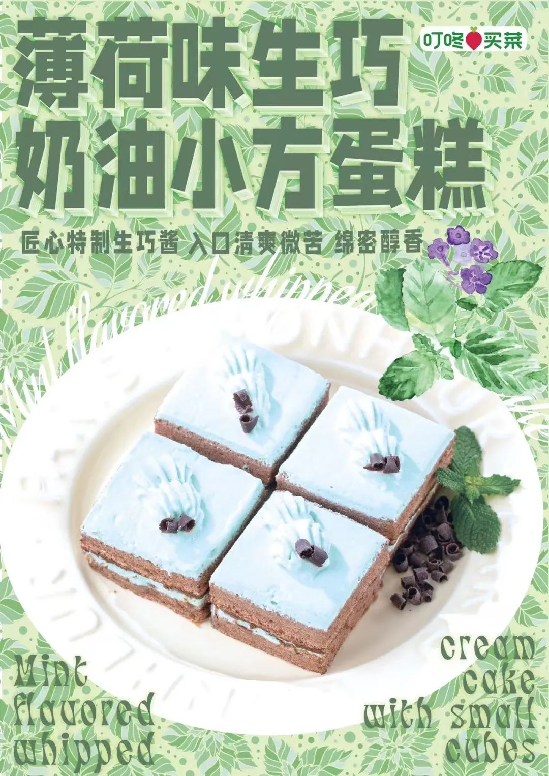 ◎叮咚买菜上新「薄荷味生巧奶油小方蛋糕」