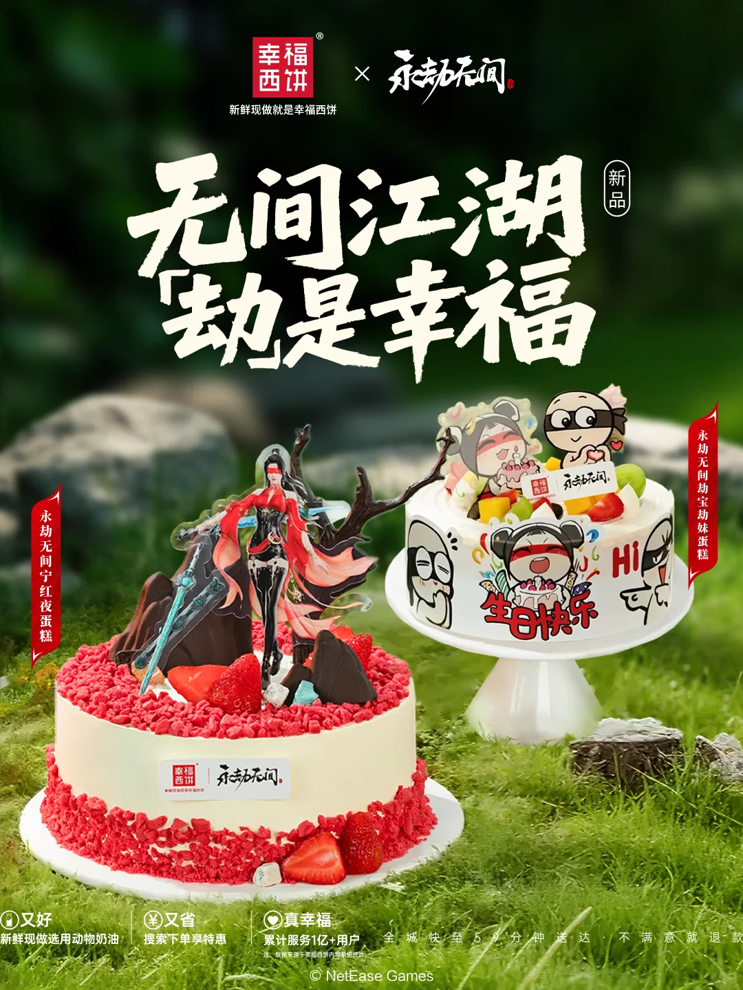幸福西饼×永劫无间上新「永劫无间宁红夜蛋糕」、「永劫无间劫宝劫妹蛋糕」