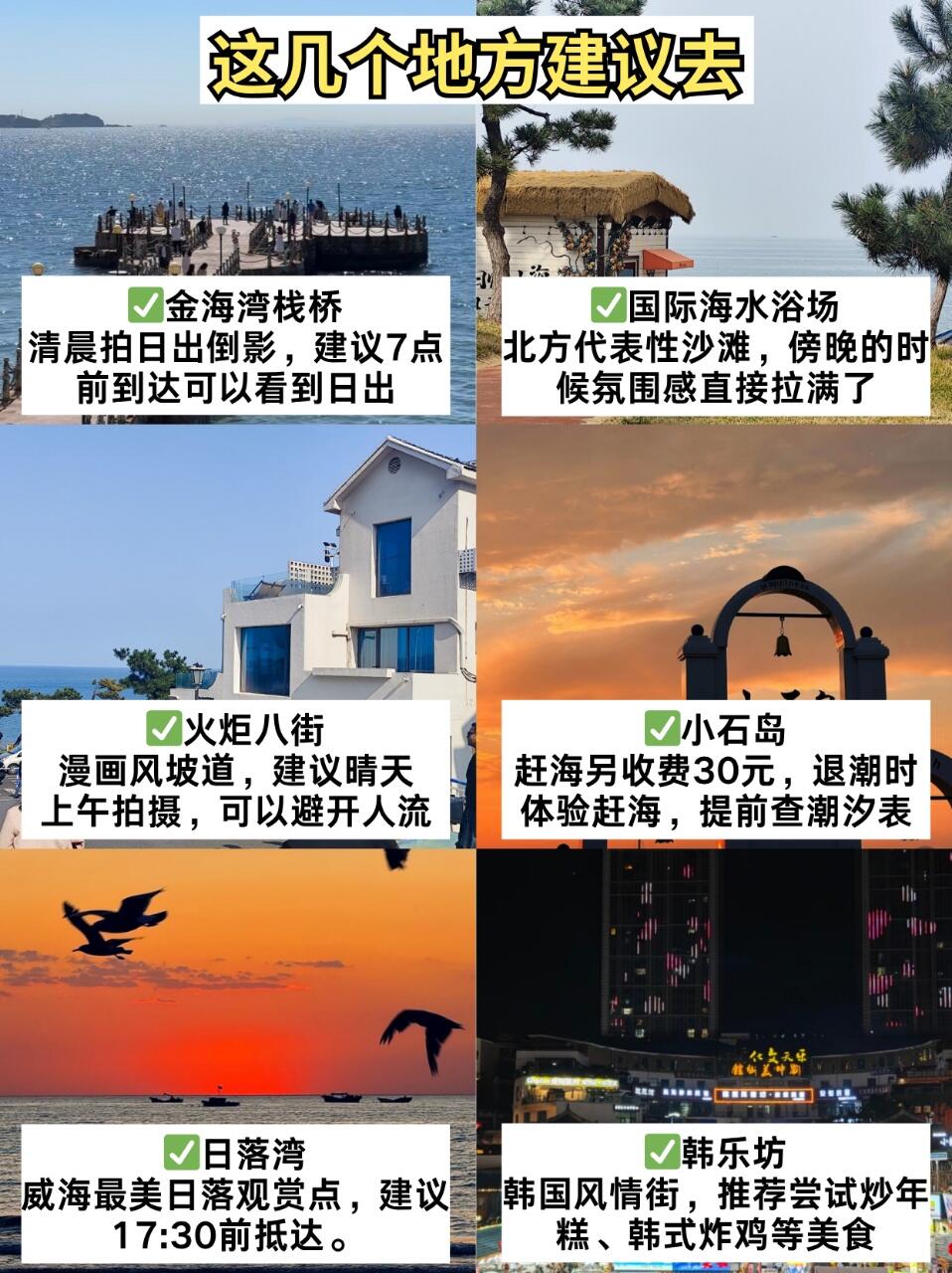 🚞高铁:威海站近韩乐坊,威海北站近国际海水浴场。