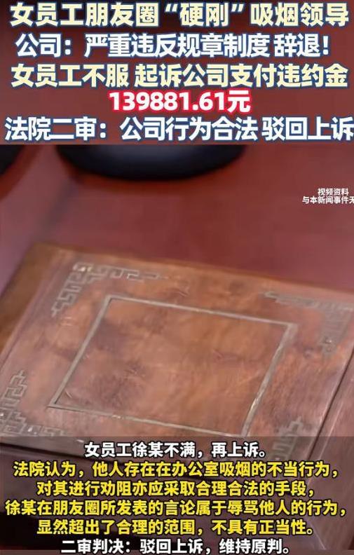 徐小娇在一家公司里干着人力资源管理的活。她原本怀揣着对工作的热情和憧憬,想着能在这岗位上好好施展一番拳脚,可没想到,领导的一个习惯却成了她工作里的“绊脚石”。 这领导是个资深烟民,一天到晚烟不离手,办公室就成了他的“吸烟室”。那烟雾缭绕的,就像给办公室蒙上了一层灰蒙蒙的纱帐,呛得人直咳嗽。徐小娇每天在这样的环境里工作,脑袋晕乎乎的,效率也大打折扣。 2018年9月27日这天,徐小娇实在是被这烟味熏得忍无可忍了。她觉得不能再这么坐视不管,于是鼓起勇气,硬着头皮去找领导理论。 她满脸诚恳地说:“领导,您看这办公室空间小,空气又不流通,您抽烟的话,大家都跟着遭殃,能不能别在这儿抽了呀?” 可领导只是轻描淡写地瞥了她一眼,满不在乎地说:“就这么点小事,至于这么上纲上线吗?我在这儿抽了多少年了,也没见出什么问题。” 徐小娇听了,心里又委屈又生气,可又不知道该怎么反驳,只能无奈地离开了。 晚上回到家,徐小娇越想越气,她一冲动,拿起手机,在朋友圈里把领导狠狠地骂了一顿。那些难听的话,直戳领导的心窝子。 她的好友大多是同事,这信息一发,迅速传遍了公司。节后上班第一天,徐小娇刚走进公司,就被领导叫到了办公室。 领导黑着脸,把她的朋友圈截图往桌上一扔,冷冷地说:你这种行为严重违反了公司的规章制度,给公司造成了极其恶劣的影响。现在,你收拾东西走人吧。 徐小娇当时就愣住了,她没想到事情会发展到这个地步。之后,徐小娇觉得自己太冤枉了,她只是想维护自己的工作环境,怎么就落得个被辞退的下场呢? 于是,她又是申请仲裁,又是一审二审地折腾,还起诉索赔139881.61元。可结果却让她大失所望,仲裁没支持她,一审二审也都败诉了。 领导有权要求徐小娇停止侵害、恢复名誉、消除影响、赔礼道歉,还可主张赔偿损失。若领导因此遭受精神痛苦,也可依据民法典第一千一百八十三条,要求徐小娇赔偿相应精神损害抚慰金。 根据《劳动合同法》第三十九条,劳动者严重违反用人单位的规章制度的,用人单位可以解除劳动合同。 在此情况下,公司解除与徐小娇的劳动合同,无需支付经济补偿。徐小娇申请仲裁及起诉索赔均败诉,正是因为其行为符合该条款中用人单位可解除劳动合同且无需赔偿的情形。 其实,徐小娇维护自己的工作环境没错,可她选错了方式。遇到这种事,她完全可以找个合适的时机,心平气和地跟领导再沟通沟通,或者找更上级的领导反映情况,再不行还能投诉。 在朋友圈骂人,不仅解决不了问题,还会让自己陷入更被动的局面。成年人的生活里,冲动是魔鬼,做事真得三思而后行!您身边有没有类似因为冲动而吃大亏的事呢? 在遇到问题时,应通过合法合理途径解决,切不可冲动行事,以免给自己带来不必要的麻烦和损失。您对徐小娇的经历有什么别样看法吗?#分享城市新鲜事#