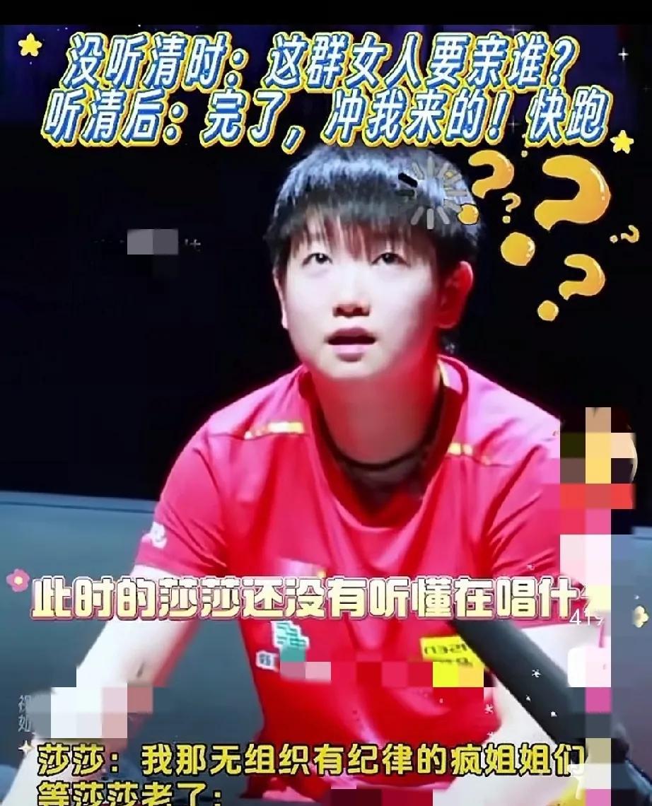 谁能想到赛场上飒到没边的莎莎,也有被追着跑的一天? 没听清时一脸懵圈问“这群女人