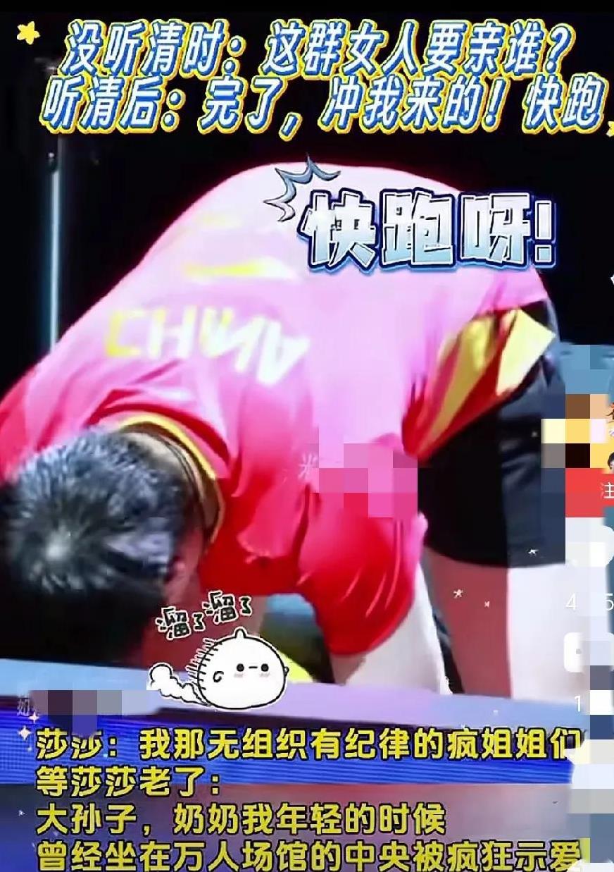 谁能想到赛场上飒到没边的莎莎,也有被追着跑的一天? 没听清时一脸懵圈问“这群女人要亲谁”,反应过来是冲自己来的,那转身就跑的样子,活脱脱一只受惊的小团子,简直太可爱了。 以后等莎莎老了,跟孙子念叨这段时,怕是眼里还会闪着光吧?这种被真心簇拥的瞬间,哪是输赢能定义的?它藏着的,是运动员和粉丝之间最鲜活的联结,比任何官方互动都来得滚烫。 你们说,要是莎莎没跑成,现在会不会多一张被“强吻”的名场面图?