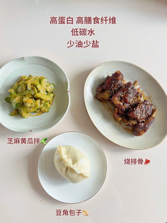 午餐:烧排骨🥩+凉拌芝麻黄瓜🥒+豆角包子1个🥟