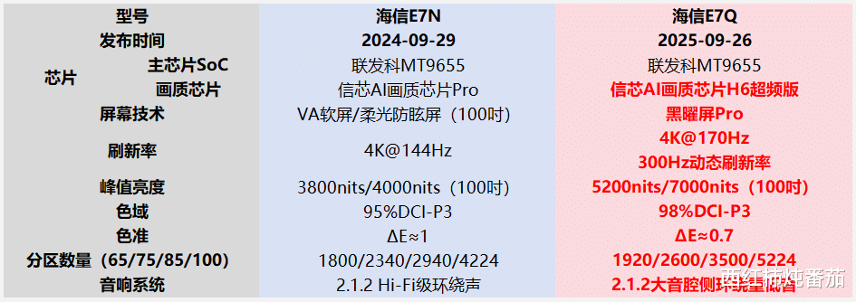 在聊产品表现之前,先看看海信E7Q升级了什么:
