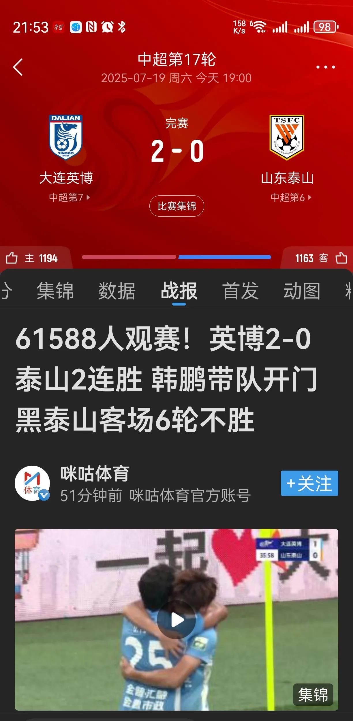泰山队现在是内忧外患! 韩鹏带队,并未实现,换人如换刀! 泰山队6场不胜了! 一胜难求! 球队的内部矛盾会越来越大!