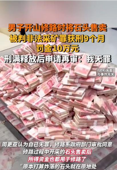“太冤了吧”陕西渭南,一男子为了方便老家的村民出行,自费150万元开山修路,然而就男子因为将开凿下来的山石拿去售卖补贴修路费用,竟被法院认定为非法采矿罪,还被判了9个月有期徒刑,罚款更是达到了10万元。男子不服,认为自己是合法修路,且卖石头只是为了节约成本,所以不该认定为犯罪。目前,男子准备申请再审。 绥化日报6月21日人一篇报道,引起了无数网友的热议,纷纷表示这其中也肯定有隐情... 周先生年轻时靠养殖发了家,但他从未忘记过自己出生的地方。 随着生意逐渐有了起色,周先生的生活条件也得到了改善,但他总觉得,村里的交通问题一直困扰着大家。 他曾经是村支书,和村里人打交道多年,早就看到了这些问题的根本。 他深知,村里没有一条好路,乡亲们的生活永远都会受困在狭窄的瓶颈里。 有一天,周先生在自家院子里坐着,突然有了一个念头——为什么不自己修条路? 于是,他开始筹划起这件事来。 周先生联系了几位修路的施工队,自己带着施工队去勘察地形,查看路面通行的实际情况。 村子周围的山路弯曲、崎岖,一遇到雨水就变得泥泞不堪,甚至有些地方连车辆都无法通行。 不过,修路的费用并不小。 周先生知道,要想修好这条路,单靠自己是远远不够的。 周先生做事一向讲规矩,动念修路后,他第一时间就向相关部门递交了正式申请。 没想到,这次不仅顺利批下来,还争取到了一笔36万元的扶贫专项资金。 虽然这让他心头一喜,但他心里清楚,这只是杯水车薪。 根据施工队测算,要打通那段山体、修出一条隧道,起码得花130万元,远远超出原有预算。 为了不耽误工程进度,也不让乡亲们再受出行之苦,周先生干脆咬咬牙,把自家原本准备用来扩建养殖场和孩子上大学的积蓄全拿了出来。 前后算下来,他自掏腰包投入了150多万元,几乎是倾尽所有。这路还没修通,家里的账本已经快要见底,但他说:“这条路能修通,钱花再多也值。” 开山打隧道是一项艰苦的工程,爆破之后,山体里炸出了大量坚硬的花岗岩。 一时间,碎石堆满了山沟。 起初,周先生也没多想可没多久,当地水务局就找上门来,指出这些石料堆积在沟道,影响汛期的排水安全,必须尽快清理。 这下又出了个难题,一边是石头没处堆放,处理起来还得花钱。 一边是修路的资金缺口仍然巨大,哪里还能再腾出预算去运走这些“废石”? 周先生站在那堆石头前发了半天愣,突然心头一动:这些可不是废料啊,这是货真价实的花岗岩,还有人专门收这种东西! 说干就干,周先生立刻联系了一家石料企业,对方实地查看后很快达成了购买意向。经过测量清点,共计8830.1立方米的花岗岩被出售,换来了44.1万元。 手上终于有点缓口气的资金了,可周先生没有犹豫,把这笔钱中将近三分之二,也就是27万多元,又一次投入到了修路工程中。 “这一车一车的石头,能补上修路的窟窿,多好!”他一边调度运输一边苦中作乐地对工人们说。 谁知,这“变废为宝”竟成了祸根。 法院一纸判决下来,非法采矿罪! 理由也简单:花岗岩是国家矿产,周先生有修路许可,没采矿许可;他卖石头获利27万多,够得上犯罪标准了。 结果就是坐牢9个月,罚款10万。 周先生当然不服,立马申请再审。 以营利为目的开采矿产,那就必须依法办证。 这事儿一出来,网上炸了锅。