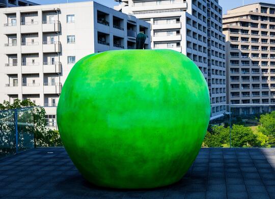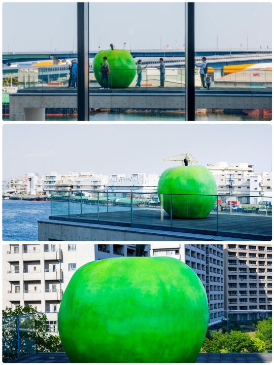 青苹果雕塑《青春》:从画廊出口直通4楼甲板,苹果与濑户内海同框寓意“希望永不沉没”