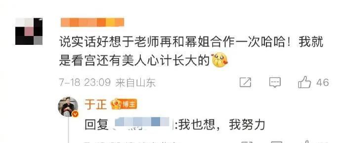 #于正喊话杨幂再合作引热议# 一边是手握雪见、晴川、白浅等爆款角色的顶流,一边是近年缺爆款、旗下艺人难出圈的状态,于正这番喊话被指差距明显。网友:如今杨幂选剧本眼光毒辣,想再合作怕是得看她愿不愿意?#于正发文大赞杨幂#
