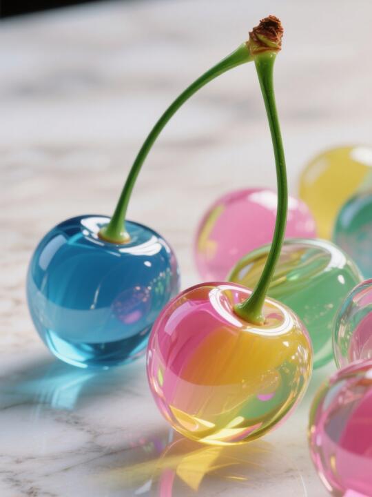 生活美学 创意灵感 iwatch表盘壁纸 有趣的水果 美式壁纸 创意 玻璃樱桃 彩色樱桃