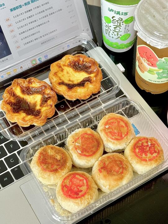 鲜肉月饼:刚出炉的饼皮脆到咔嚓响,肉馅juicy还带点胡椒香,边吃边等复活甲冷却太幸福~