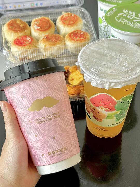 🍎苹果鲜茶:新鲜苹果榨成汁加绿茶打底,果香和茶香平衡得刚好,喝起来毫无负担,女生必点!