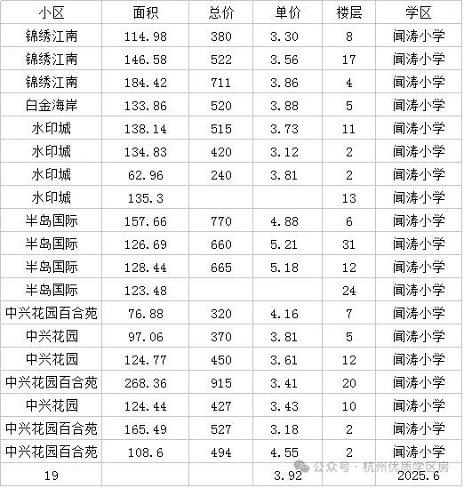 学区 成交数据 真实 江南实验 滨江实验 闻涛小学