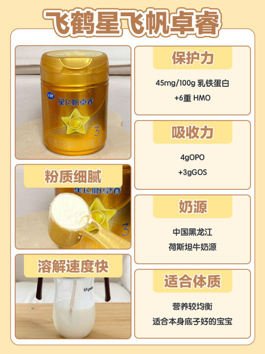 ✔飞鹤星飞帆卓睿:45mg/100g乳铁蛋白+6重HMO