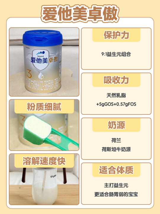 ✔爱他美卓傲:天然乳脂+5gGOS+0.57gFOS