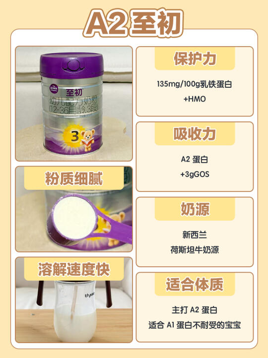 ✔A2至初:135mg/100g乳铁蛋白+HMO