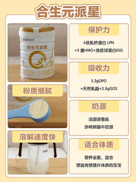 ✔合生元派星:5.2gOPO+天然乳脂+3.8gGOS