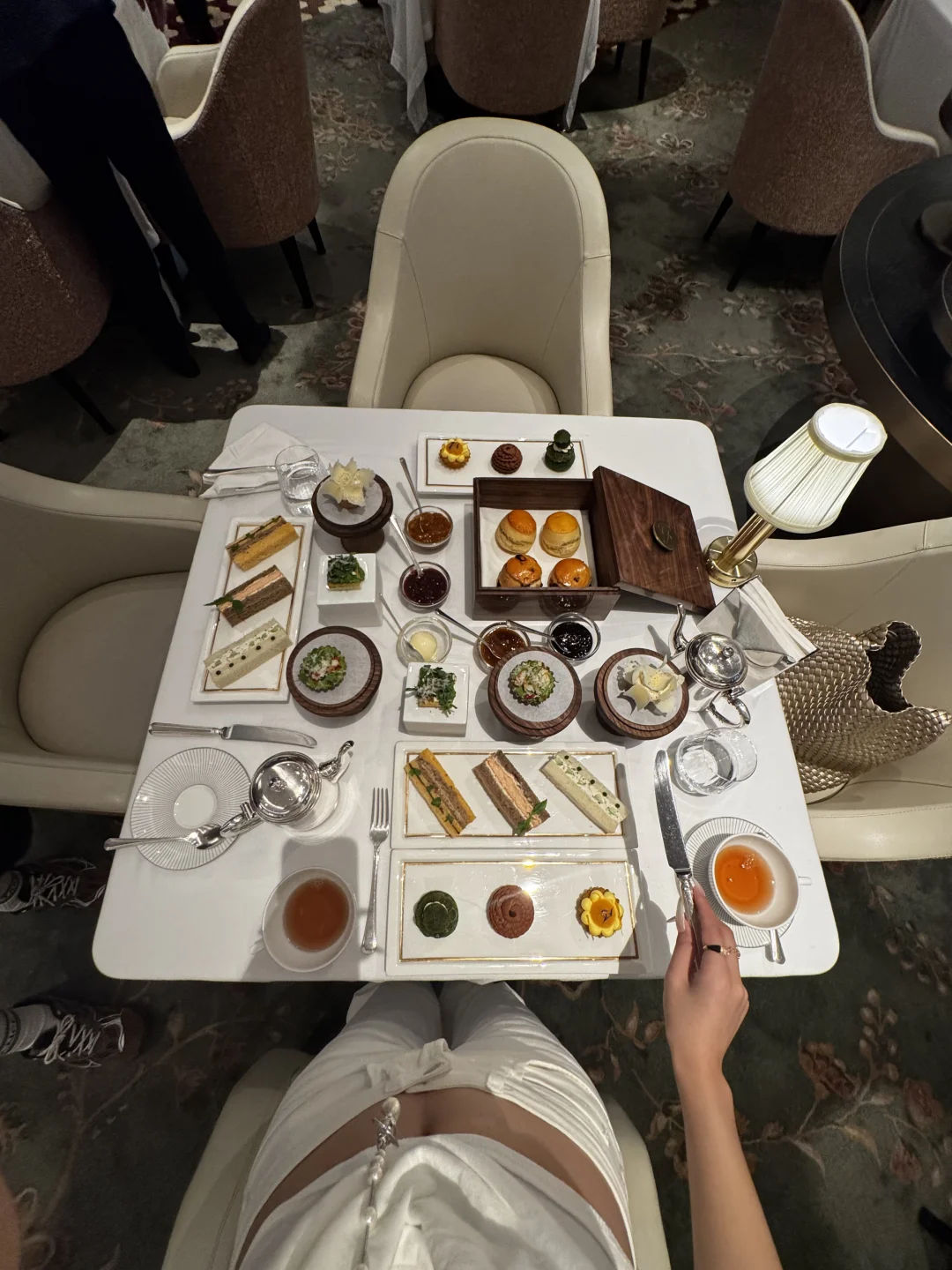 盛夏的周末,把下午茶当brunch 看这满满一桌 眼睛已经看饱了哈哈哈 既能满足我咸口口味 也能满足甜品胃~ 还有哈罗德招牌的司康!! 配了好多种的果酱、上桌那一刻很有仪式感捏~ 在这里呆了一下午外面下着雨 屋内还有现场弹奏的钢琴治愈着 咱就是说下雨天也有下雨天的浪漫🎀