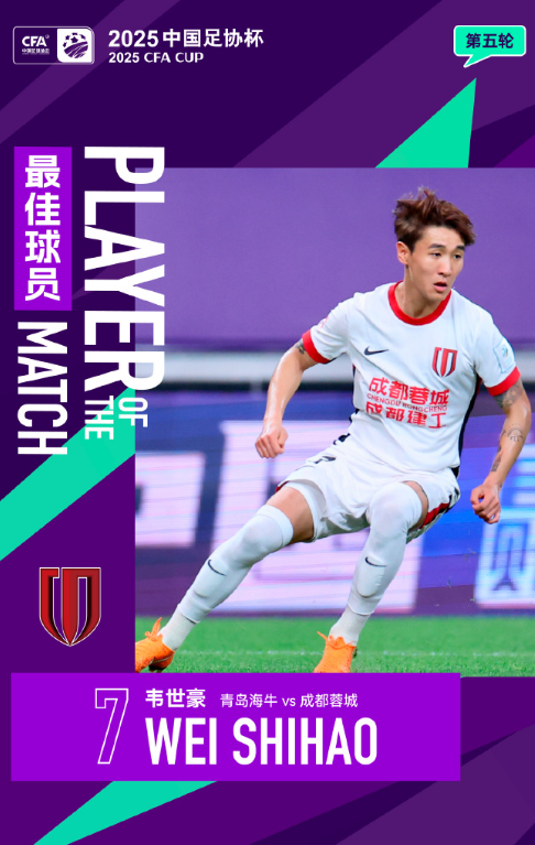 古尔芬克尔两送助攻,韦世豪梅开二度,成都蓉城2比1青岛海牛,晋级足协杯四强。韦世豪荣膺本场最佳球员。