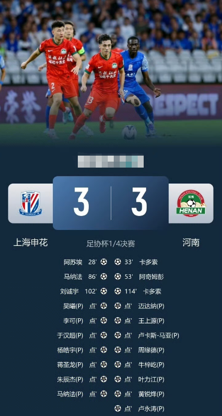 关键时刻上超哥!遗憾的是这次于汉超上场也没能力挽狂澜。90分钟鏖战,双方2:2打平。加时比赛3:3平。最终经过点球大战,河南11:10胜出。祝贺河南队晋升足协杯4强!