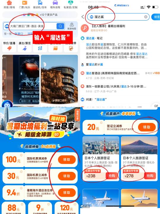 暑期的旅行计划 想必大家都已经安排好了吧 有些人好奇溜达酱怎么到处玩😯 机票不贵嘛? 其实,走出去不难也没想象中贵 如果像我一样精打细算,多薅官方羊毛 百元机票也是分分钟拿下的啦💯 这不,最近我发现了携程全球游出境优惠券包活动 - ✅338元携程机票立减券: ✍🏻包含➖100出境满减券,➖30出境立减券,9.4折海外酒店券,➖88送机满减券,9折日本购物券,120元外币兑换满减券。 ✍🏻签证特惠价格➡ 机票用户专享20元立减券 ,日本签证办理238元起,叠加立减券更划算 ✍🏻不出签全退服务➡ 包简化办理、顺丰包回邮、不出签/超时出签全退 ✅ 领取方式: 搜索口令词【溜达酱】到活动页面~所有券都可以先领上啦 - ✅“头等舱捡漏榜单” ✍🏻百元坐头等舱:享受专属客服、品质餐食,花低价就能体验到头等舱服务 ✅捡漏方式:搜索口令词‼【头等舱GO】到活动页面查看头等舱合集~ - 溜达酱刚从首尔回来,这一波羊毛大家赶紧Get起来! - 👣游玩线路: Day1⃣:落地仁川机场➡明洞citywalk&购物🛍➡梨泰院➡南山公园、首尔塔看夜景; Day2⃣:Breadypost早餐➡明洞漫画街➡光化门广场➡景福宫➡北村韩屋村➡梨花女子大学➡延世大学➡弘益大学 - 🏨住宿:推荐住明洞或弘大;明洞购物方便,美食扎堆;弘大年轻人多,夜生活很嗨,氛围超绝 - 🛒购物必去: ✔ 明洞:美妆护肤、时尚服饰,应有尽有,一站式购物超方便。 ✔新世界免税店:品牌齐全,折扣力度大 - 🍽美食打卡: • 石锅拌饭:蔬菜、肉和米饭搭配酱料,搅拌均匀,每一口都超满足。 • 海鲜锅:满满一锅新鲜的海鲜,汤汁浓郁,鲜掉眉毛! - ⚠除了韩国,泰国、日本、韩国、新加坡… 用券飞哪里都划算!趁暑假、趁年轻,出国看看世界~ -